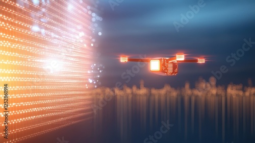 Drone Flying Towards Digital Data Source Visualization