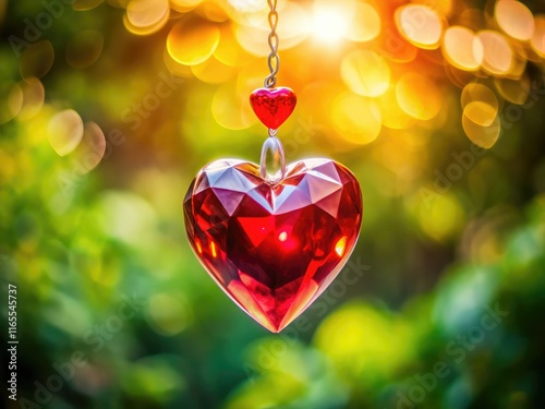 Drone Photography: Red Crystal Heart, Soft Shiny Background