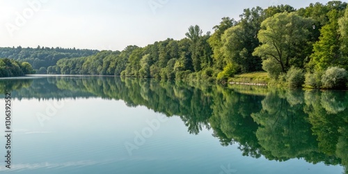 Drone View: Isar Reservoir Dingolfing, Bavaria - Mirror Image Reflection