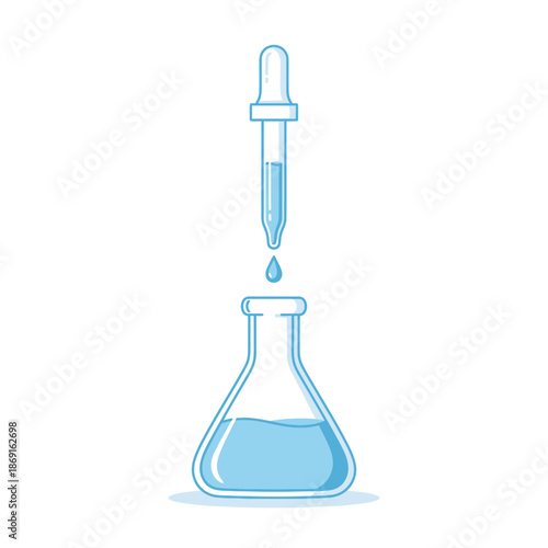 Dropper Pipette Adding Liquid to Flask, Science Experiment, Chemistry Laboratory Research