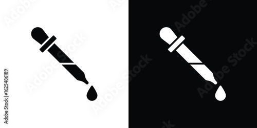 Dropper pipette icon collection. Black and white filled vector illustration.