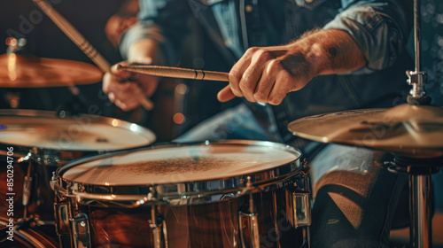Drummer’s Hands Using Sticks on Drum Kit