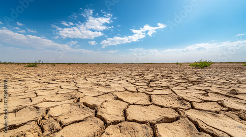 Dry Cracked Earth Desert Landscape Hot Summer Day Arid Climate Sun Sky Soil Heat Sand View Brown