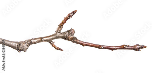 dry pear tree branch with buds. on a white background