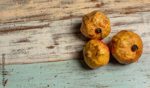 dry pomegranates on wooden table