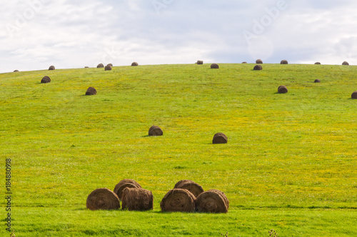 Drying straw bales in the fields after harvest - Holloko, Hungary