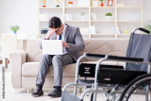 Dsabled businessman on wheelchair working home