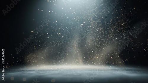 Dust particles illuminated by dramatic spotlight on a dark stage.