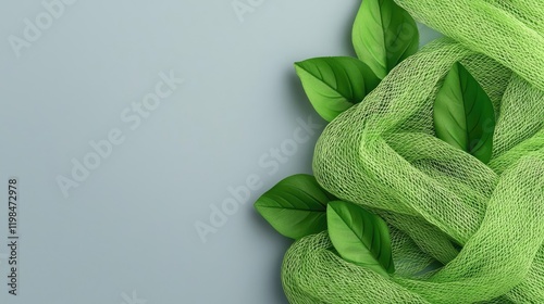 Dust pollution idea. Green leaves intertwined with a gentle fabric on a soft background.