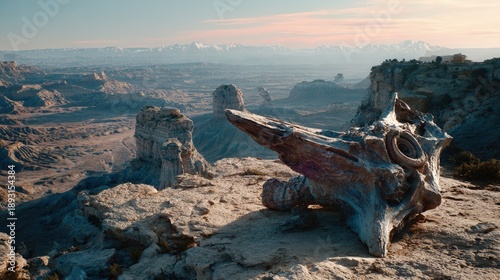 Dusty Desert Landscape With Ancient Ruins And Metallic Object