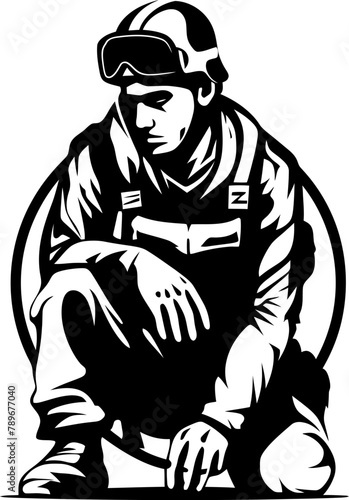 Duty Defend Soldier Iconic Emblem Brave Battalion Kneeling Soldier Vector Icon