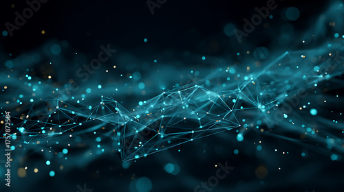 Dynamic abstract digital network of glowing nodes and lines, representing data flow and futuristic connections, perfect for tech concepts.