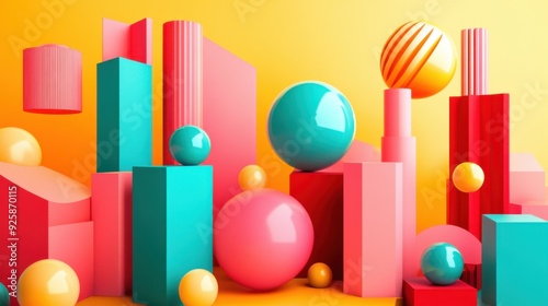 Dynamic Abstract Geometric Shapes in Vibrant 3D Illustration with Soft Shadows