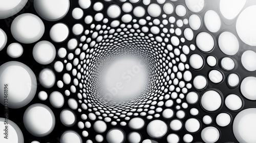 Dynamic Abstract Pattern of Circles Creating a Sense of Depth and Movement in Black and White Visual Art Design Concept