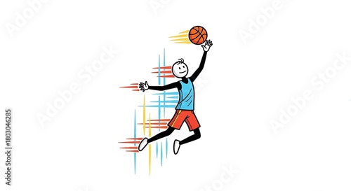 Dynamic Basketball Player Illustration with Colorful Abstract Background.