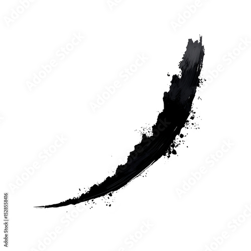 Dynamic black brushstroke on transparent background, showcasing artistic and expressive style. stroke is curved and textured, adding sense of movement and creativity