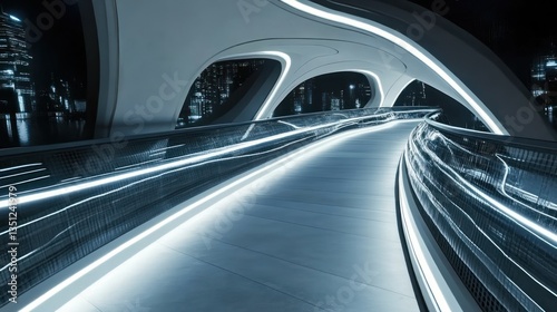 Dynamic bridge design with illuminated railings and futuristic aesthetics.