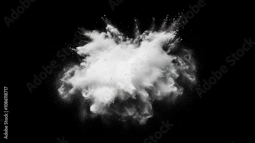 Dynamic burst of white powder against a dark background, forming a vibrant cloud.
