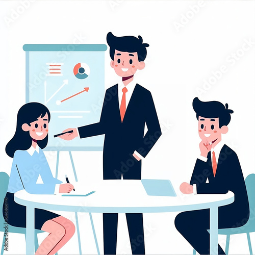 Dynamic Business Meeting Illustration - Perfect for Enhancing Corporate Presentations, Webinars, and Online Training Modules