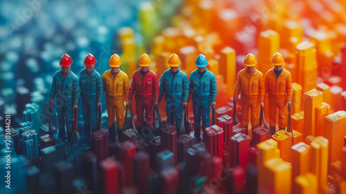 Dynamic celebration of International Workers' Day with diverse workers in colorful attire, holding tools of their trade