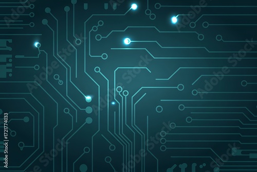 Dynamic digital circuit board with glowing nodes, symbolizing innovation and future technology