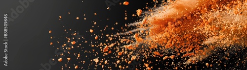 Dynamic explosion of orange powder against black background, perfect for abstract backgrounds, design elements, or artistic illustrations.