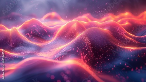 Dynamic Futuristic Holographic Fabric Waves in Glowing Neon Light, High-Tech Aesthetic Conceptual Image with Fluid Motion