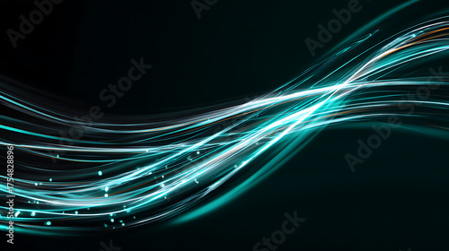 Dynamic glowing light paths in teal and blue on dark background for effective electric vehicle advertising banners