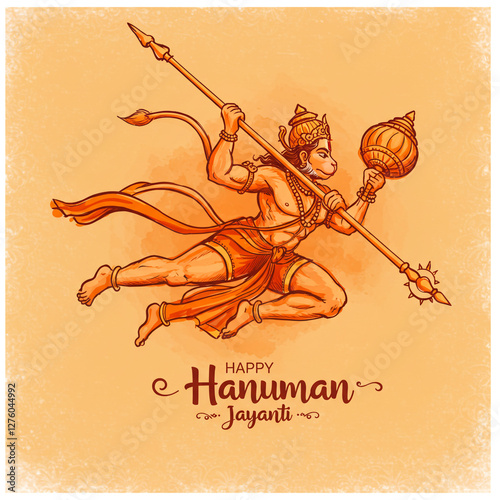 Dynamic Hanuman Jayanti Illustration: Lord Hanuman Leaping with Gada and Spear
