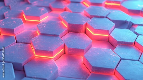 Dynamic hexagonal patterns with neon glow abstract design digital art futuristic environment close-up viewpoint visual concept