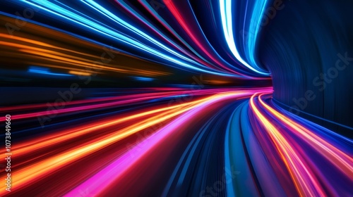 Dynamic image showing vibrant light trails streaking through a tunnel, evoking speed and motion, symbolizing progress and technological advancement.