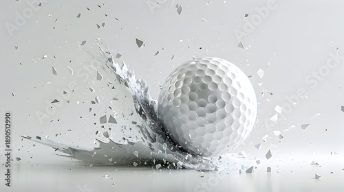 Dynamic impact of golf ball shattering solid surface in high-speed action concept
