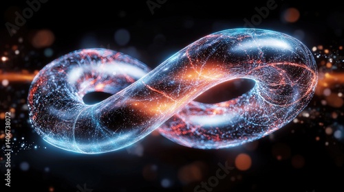 Dynamic infinity loop visualization abstract digital art studio setting high-contrast colors futuristic concept