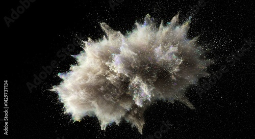 Dynamic Iridescent Particle Explosion Against Black Void with Swirling Motion and Turbulence Creates A Mesmerizing Visual Effect with Shimmering Texture