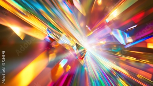 Dynamic light dispersion through a prism, creating vibrant, colorful beams of refracted spectrum