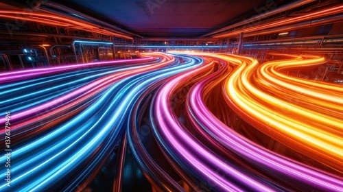 Dynamic light trails urban setting digital art nighttime abstract view energy concept