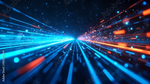 Dynamic Neon Blue Light Trails Streaking Through Dark Starry Background
