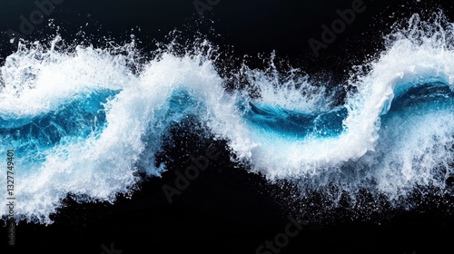 Dynamic Ocean Wave in Motion Captured Against a Dark Background