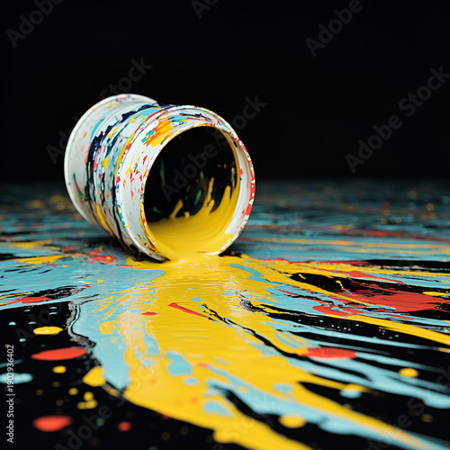 Dynamic paint spill art showcase studio photography creative space top-down view color exploration