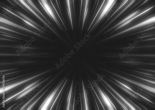 Dynamic Radial Light Burst on Black Background(黒い背景から白い放射線状の光が力強く出ているスピード感のある背景)