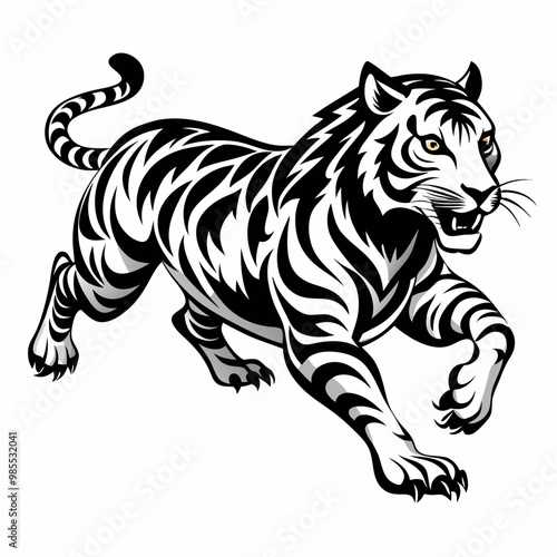 Dynamic Running Tiger Silhouette Vector,High-Quality Vector Silhouette of a Running Tiger,Stunning Tiger Running Silhouette Vector for Creative Projects