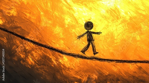Dynamic Stick Figure Swinging on Rope with Motion in Vibrant Abstract Background