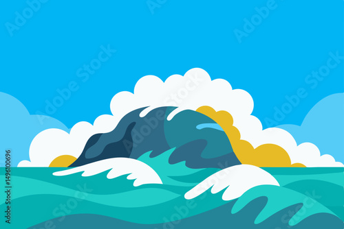 Dynamic Summer Sea Waves Crashing Against Dark Rocks Vector Illustration Background
