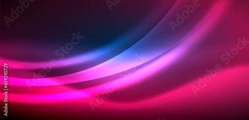 Dynamic waves in ethereal glow of neon lights. Concept merges fluidity of motion with vibrant allure of neon, crafting entrancing backdrop that embodies both vitality and futuristic sophistication