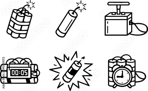 Dynamite explosive bomb danger line icons. Vector