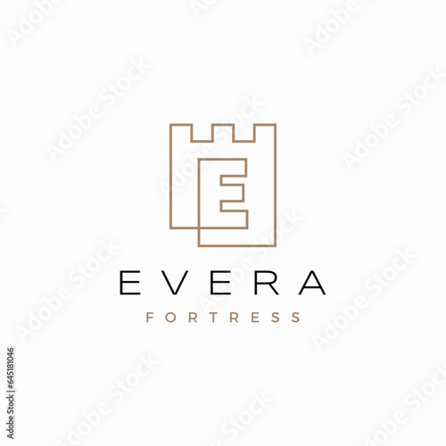 E Letter Castle Fortress Logo Outline Vector Icon Illustration