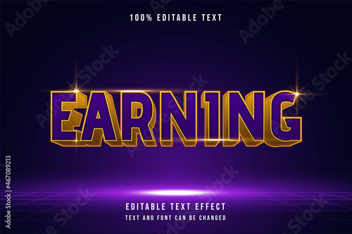 Earning,3 dimensions editable text effect purple gradation gold style