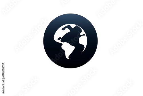 Earth globe icon, black and blue circular symbol, simple flat design, isolated on transparency background, representing global connection, international communication, and worldwide network