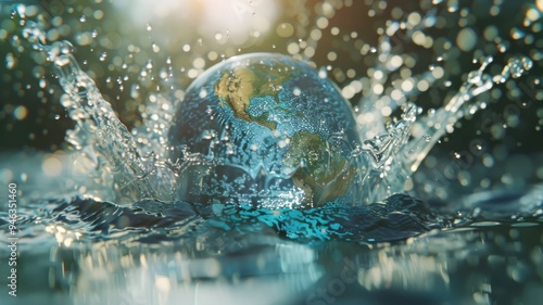 Earth Splashing in Water with Sunlight.