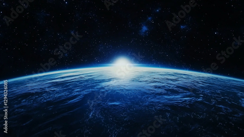 Earthrise Silhouette, Celestial Horizon, Dark Blue Planet